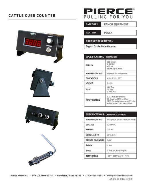 The PIERCE cattle cube counter is the perfect solution for eliminating wasteful feeding and monitoring feeding costs. With its LED screen and ability to count up to 9,999, this counter easily mounts to your feeder. It also features easy plug in connections and can be used with both trip and auger style counting methods. Please note, some modifications may be needed to fit your specific feeder model.