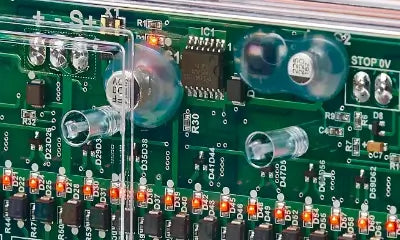 A silicone gel coating, coveringthe electronic components. Ideal for very tough conditions, dealing with heavy vibration and extreme condensation.