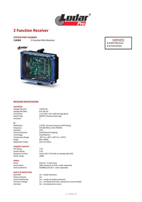 2 Function 12/24V Lodar Replacement Receiver | 11 Series