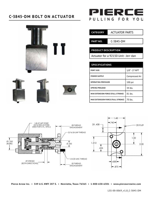 This Bolt-on Actuator is a direct replacement for Jerr-Dan applications using Husco spool valves. Designed for easy installation, it restores pneumatic control in Lodar wireless air systems. OEM bolt-on actuator for Husco spool valves Compatibl...