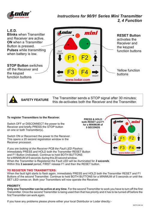 4 Function Lodar Replacement Mini Transmitter | 9000 Series