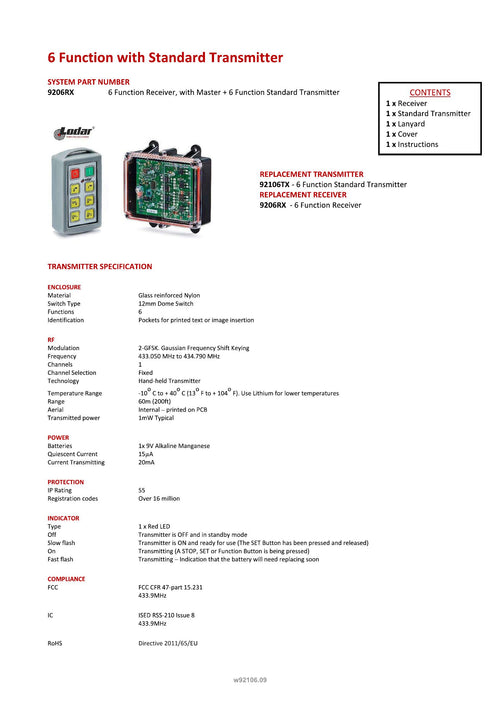 6 Function Lodar Replacement Standard Transmitter | 9000 Series