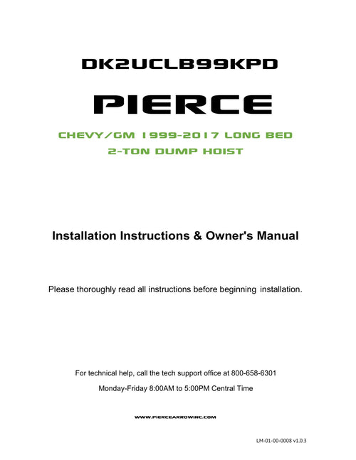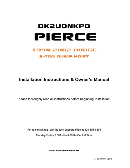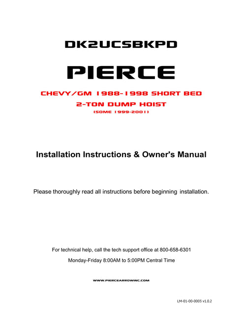 Designed for many year and frame specific Dodge®, Ford®, and Chevy®/GMC® models, our dump hoists allow you to utilize your existing factory bed.  Installation by experienced installers can take 12-16 hours, however, we recommend expecting 16-24 hours for first-timers. Check out this YouTube overview for the PIERCE 2T Dump Bed Kit for step-by-step guidance.  This will give a great overview for you to gauge if this kit matches your skill level, or if you might want to find an installer to assist.