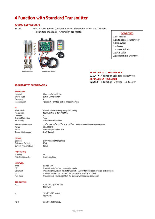 4 Function Standard Wireless Actuator Control System | 92 Series | FET Air Receiver