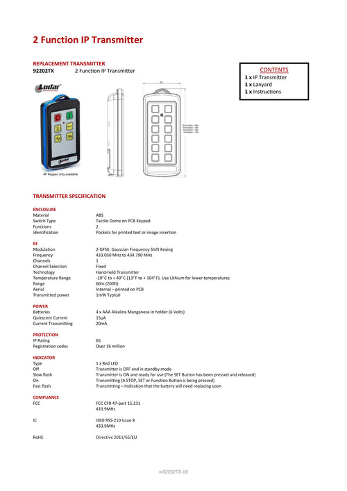 2 Function Lodar Replacement IP Transmitter | 9000 Series