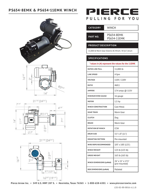 PIERCE 110V Electric Winch – 11,000 lb, 8" Drum (Planetary Drive)